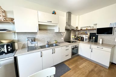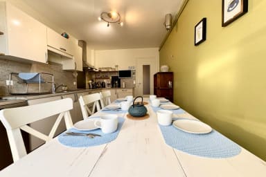 - Fully equipped kitchen (oven, TV, dishwasher, fridge, freezer, microwave, kitchen equipment, washing machine, etc.) with dining table for 6.