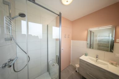 - Shower room with shower, heated towel rail and vanity unit