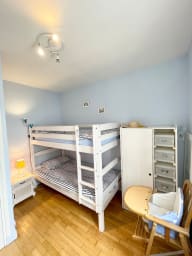 - Bedroom with two single bunk beds and storage space