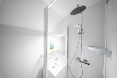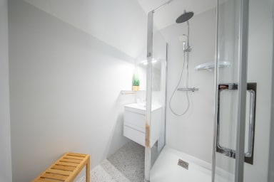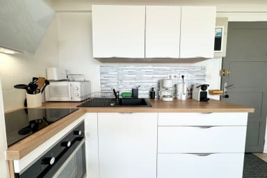 - Fully-equipped kitchen with oven, microwave, toaster, Nespresso and filter coffee makers, fold-down dining table.