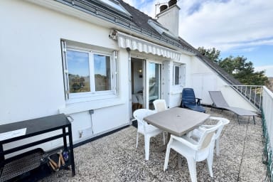 This apartment offers you a large private terrace, equipped with garden furniture, with a sea view.