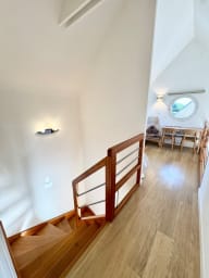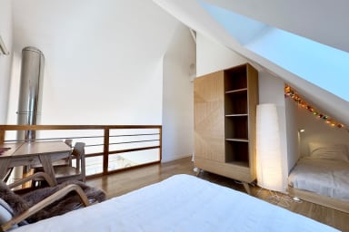 - Mezzanine bedroom 2 with 160 cm double bed, 90 cm single loft bed and storage space.