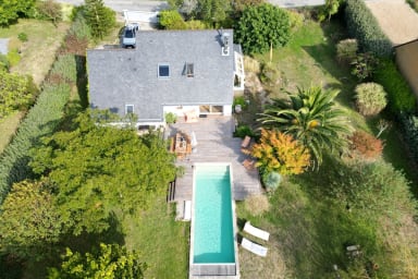 Discover this sumptuous house located in a peaceful, family-friendly neighbourhood in Erdeven. A 5-minute drive from the beaches and the village of Etel with all its amenities, bars and restaurants with sea views.