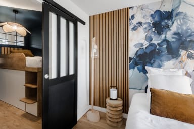 This 23 m² apartment, designed by an interior designer, offers all the comforts you need. Designed for two people, it can accommodate three (one child) with its extra single bed.