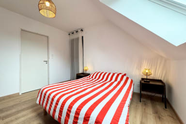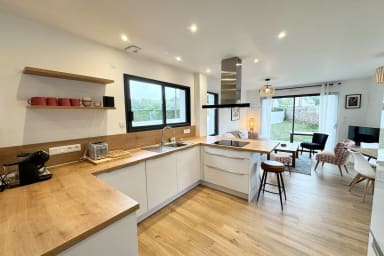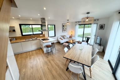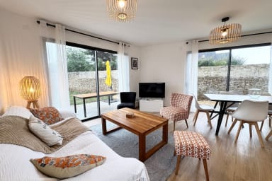 This beautiful, light-filled house, tastefully furnished and decorated, offers 100 m² of living space and can comfortably accommodate 6 people in its 3 bedrooms, or 7 people.