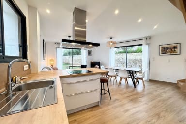 Enjoy this new luxury house in Sarzeau, combining comfort and modernity. Ideally located just 5 km from the beaches and 3 km from the village, it offers easy access to shops and restaurants. The house is fully equipped for a pleasant stay with family or friends. Relax in the large private garden, perfect for children or for enjoying the sun. An ideal place for a relaxing holiday in the heart of th