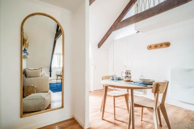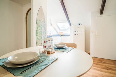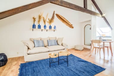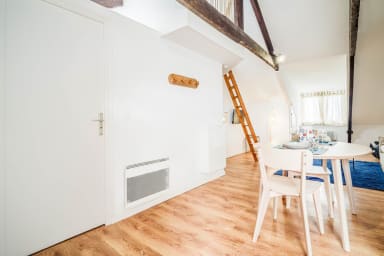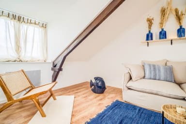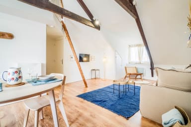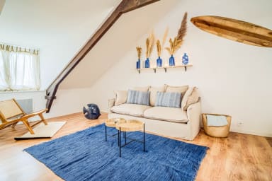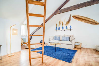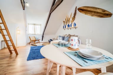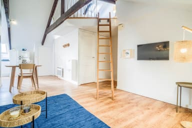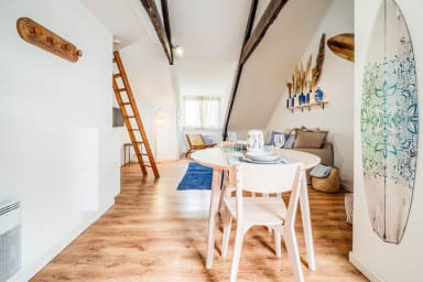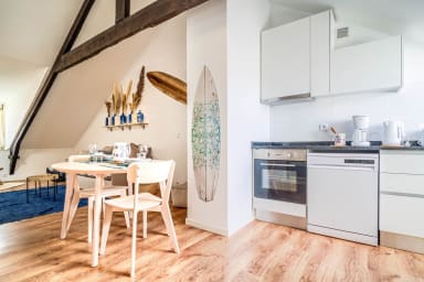 Discover this charming surf- and sea-inspired studio, ideally located in the center of Quimperlé. Its loft bed offers a cozy and warm living space. Perfectly laid out, it combines comfort and tasteful decor. Just a stone's throw from shops, restaurants, and the region's most beautiful sites.