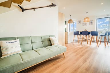 A bright 120 m² apartment, fully equipped and offering luxury amenities, accommodating up to 8 people. Its generous proportions and south-facing aspect create a warm and decidedly comfortable atmosphere.