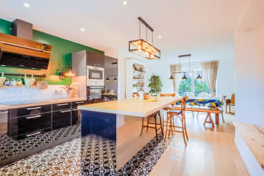 - Fitted and equipped kitchen: oven, microwave, refrigerator, kettle, coffee maker, toaster, electric hob and large central island.