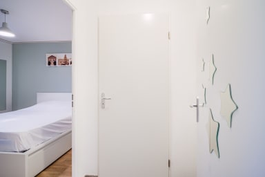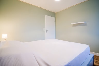 - Bedroom with double bed (160 x 200) and storage space