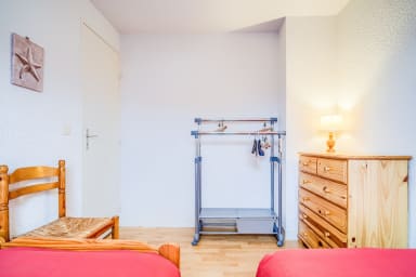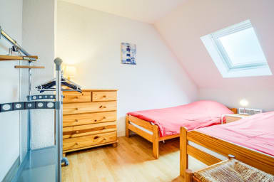 - Bedroom 2 with two 90x190 single beds and storage space