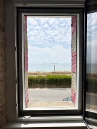 - Ground floor/living room: 140 cm sofa bed, dining area with sea view