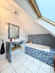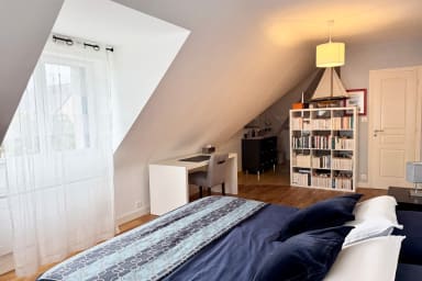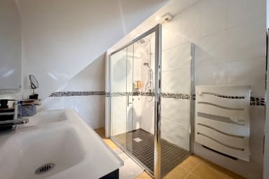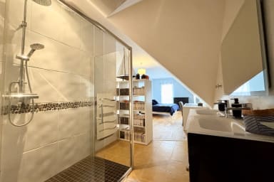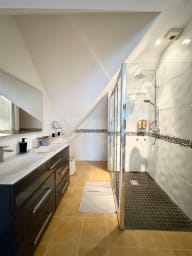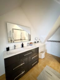 - Suite parentale avec lit double 180, coin bureau et sa salle de douche privative.