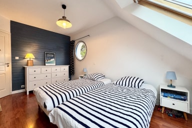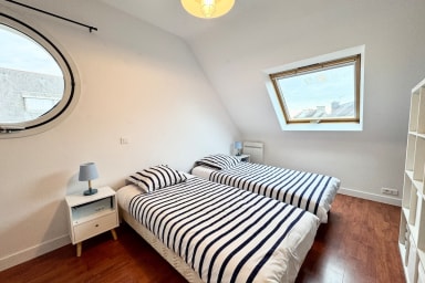 - Chambre 3 avec deux lits simples 80 (ou un lit 160) et rangements.