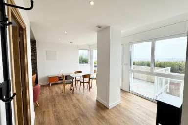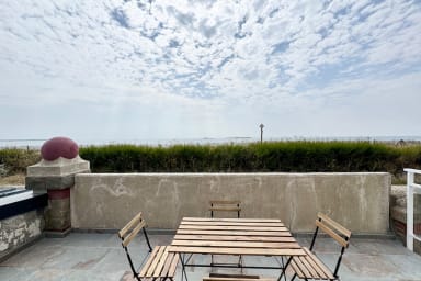 Vous apprécierez la situation exceptionnelle les pieds dans l'eau. Face à l'appartement, vous trouverez la magnifique et célèbre plage de Penthièvre, connu pour son spot de surf.