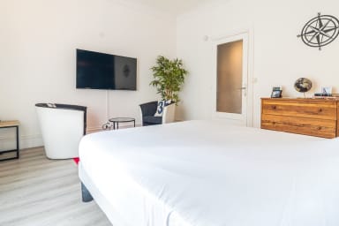 - Spacieuse chambre avec lit double 160/200, rangements et son coin détente, télévision.
