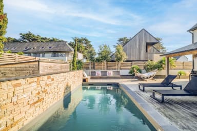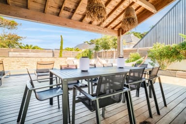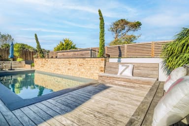Cette maison de 140 m2, idéal pour 8 personnes avec ses 4 suites, vous offrira de belles prestations pour un confort optimal, sa magnifique terrasse aménagée pour vos repas en famille ou entre amis, sa piscine chauffée, vous ne voudrez plus en partir.