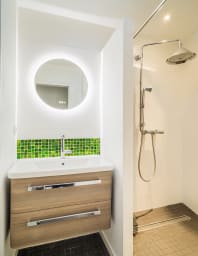 - Chambre 1 avec lit double 180 x 200, rangements et terrasse privée