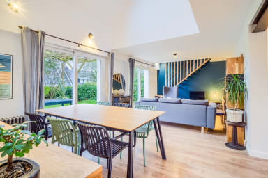 Maison de famille spacieuse et lumineuse, nichée au fond d’une impasse dans un quartier calme et familial. À seulement 10 minutes à pied des plus belles plages, des bars et restaurants face à la mer, elle offre un cadre idéal pour se retrouver et profiter pleinement du littoral. Jardin, terrasse et barbecue complètent ce lieu tout confort, parfait pour des moments de détente en famille ou entre am