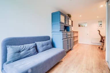 - Bureau avec rangements, lits d’appoint et espace buanderie (lave-linge et sèche-linge)