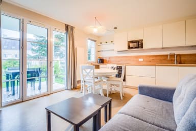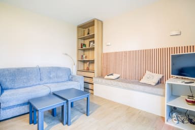 Cet appartement de 42 m² peut accueillir confortablement jusqu’à 4 personnes grâce à sa chambre indépendante et son canapé-lit dans le séjour.