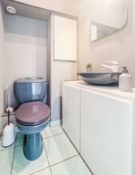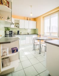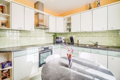- Cuisine fermée, aménagée et équipée : four, micro-onde, réfrigérateur, cafetière, grille-pain, bouilloire