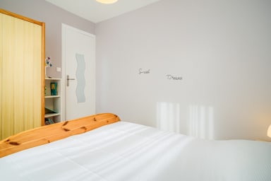 - Chambre 2 : lit double 140x190, rangement et coin bureau