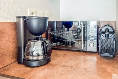 - Une cuisine aménagée et entièrement équipée : four, micro-ondes, réfrigérateur, grille-pain, bouilloire, cafetière