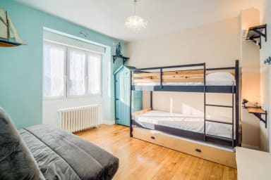 - Chambre 4 avec deux lits simples superposés et un canapé-lit.