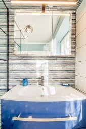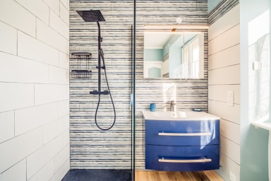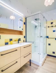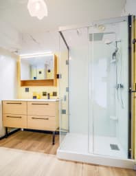 - Salle de douche avec rangements.