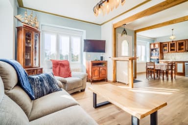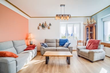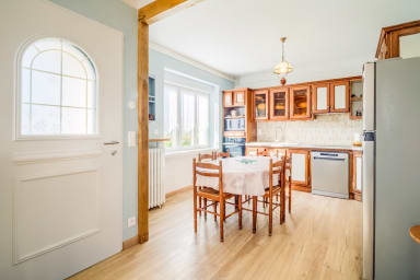 Cette maison de 120 m² peut accueillir 8 personnes avec ses 4 chambres et dispose de places de stationnement dans l'allée de la maison.