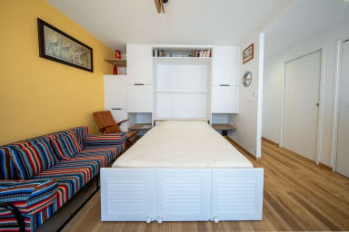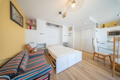 Le studio d'une superficie de 28 m² peut accueillir deux personnes et se trouve au 1er étage d'une copropriété sans ascenseur.